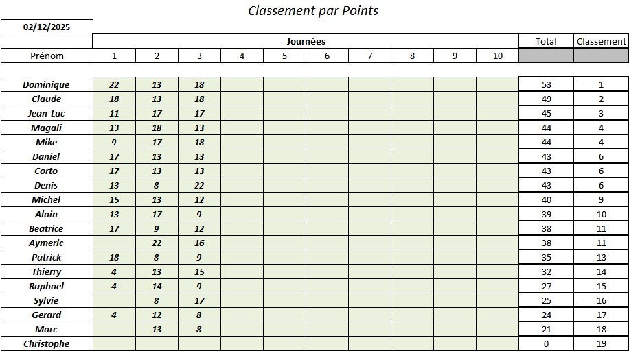Le Tournoi de Ligue a lieu les mardis à 19h, sauf pendant les vacances scolaires.