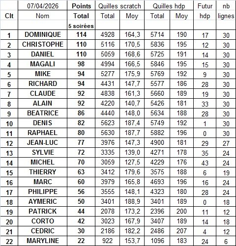 Les résultats affichés sont ceux de la Ligue en cours, dans sa dernière édition.